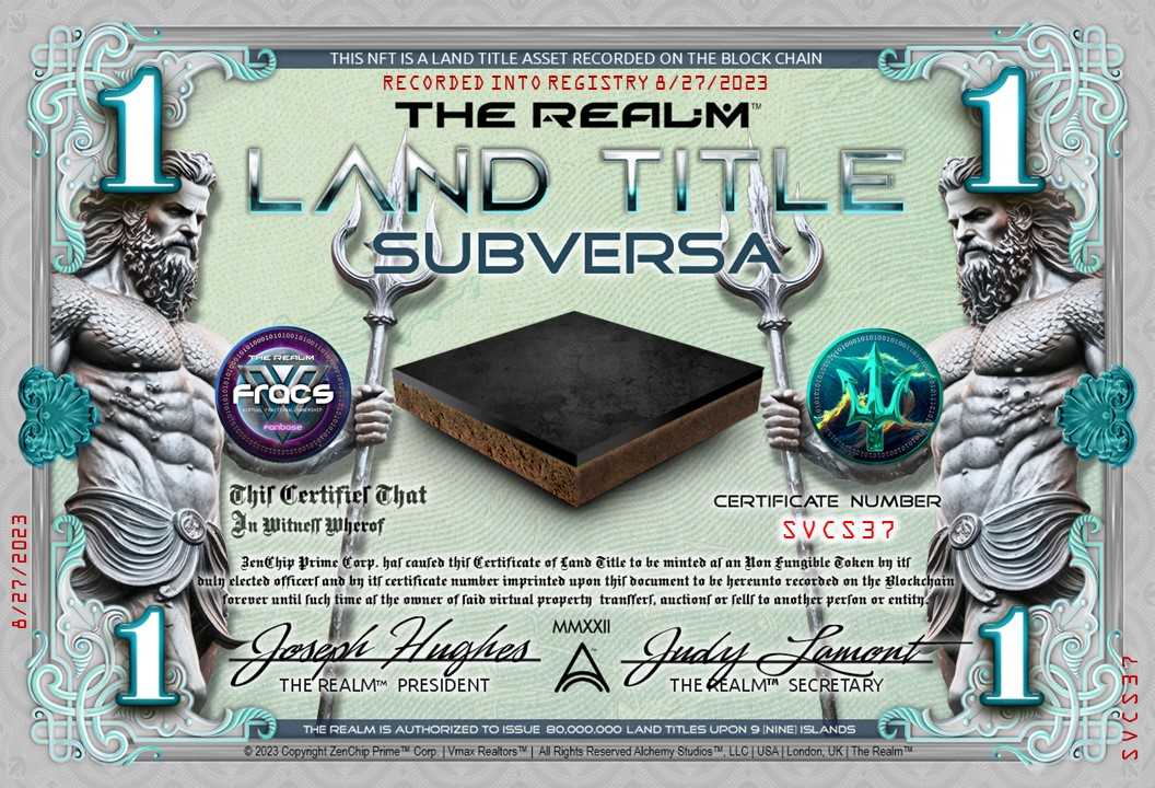 Select and purchase your Subversa Land Title for staking out your prime properties in Subversa Oceanic Living Location. The Land Title on the Blockchain secures your land or sea Block for potential undersea retail business and exploring the Subversa. Receive ONE FRAC when purchasing your Subversa Land Title.